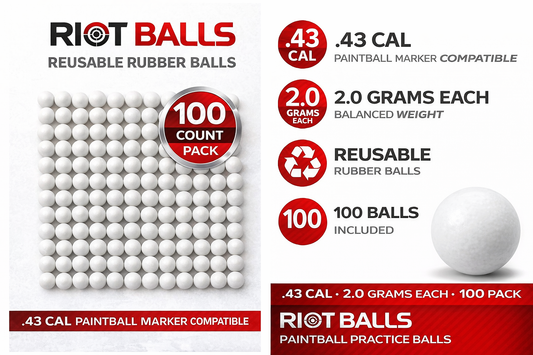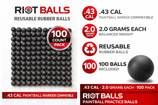 RIOT BALLS .43 Cal Reusable Training Balls – 2.0g Steel Core PVC Coated – 100 Pack Black White